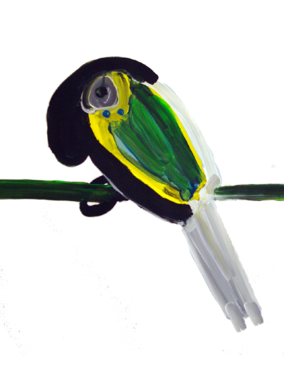 Next in our artwork of the week series, we bring you a painting by Lesley Nimmo. Budgie is from Lesley’s series of long-tailed tropical birds that appear to have come from an untouched tropical haven. Lesley creates her images from soft swathes of colour using a large paintbrush that solidifies the image against the white background, bringing it to life.