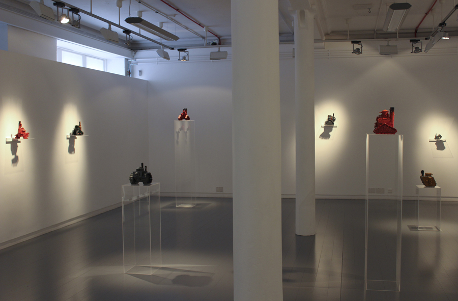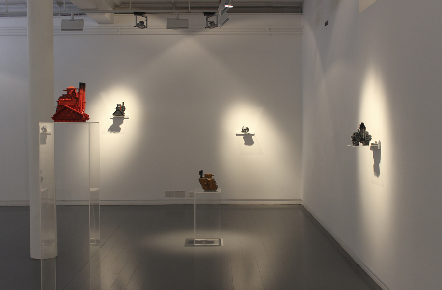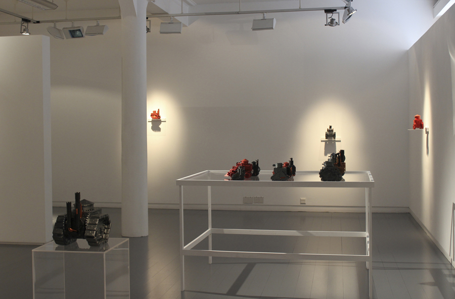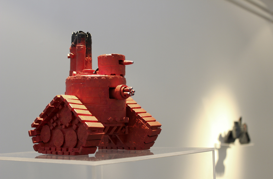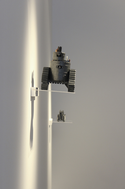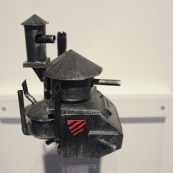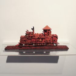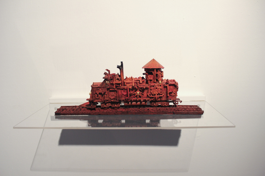Although they arrive in numbers, they are all one of a kind and each have their own individual characteristics. They are an army, and bring to mind the fantasy world of Warhammer and the artillery that accompanies it. They also speak of the artist’s love of American diesel locomotives, chassis and steam engines. These steam punk tanks are small but mighty. Children and adults of all ages will have their imaginations working overdrive at the possibility of play and power rolled up into each of these sculptural tanks.