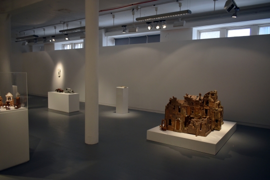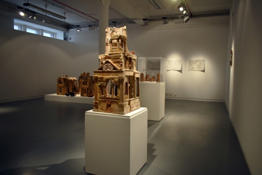 Logie works instinctively with multiple mediums through an experimental process to create new and imagined landscapes and architecture. His sculptures go through transformations and are often destroyed half way through building. This allows an alternative perspective on his work and process and a new-remade work emerges from the rubble.