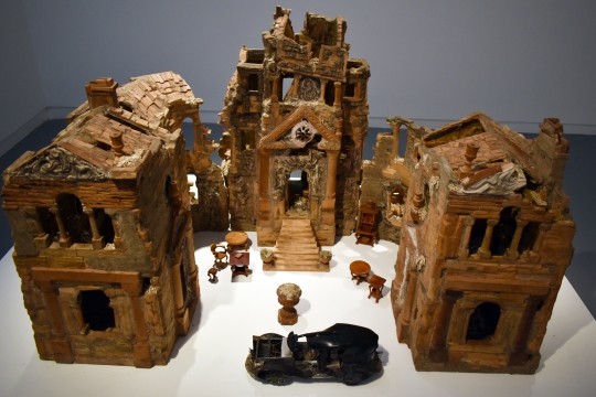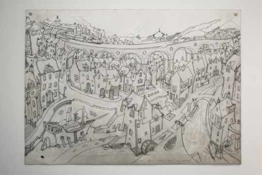 The political also plays a large part in his work and thinking, both sculpturally and in drawing. Hard topics such as 9/11 are explored in re-assembled parts and objects to create hidden histories where the viewer is almost encouraged to create their own narratives based on the hints of placed personal objects, memorabilia and shapes hidden in building structure.