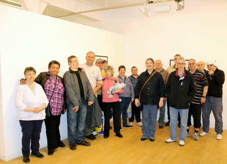 Today was the opening of Aspire artist Catherine Rankine's Solo Showcase, and for the occasion, her friends from the Hayfield Day Centre came in big numbers to support her!
