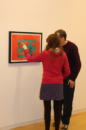 Visitors perused the lively, colourful artwork and congratulated the artist on her show.