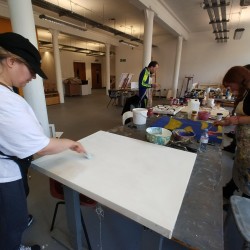 Art tutor Alison who led the workshops commented “We’ve tried to tackle things that wouldn’t be possible at their usual art class, like using the printing press or firing clay, even stretching and priming their own canvases before painting them.”