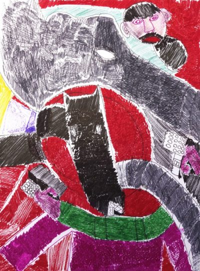 This week we look at another stunning picture from our x3 collaborative exhibition with ActionSpace and Venture Arts! Altered Space is a three man show and this piece, highlighted today as our Artwork of the Week, is by London based ActionSpace artist Thomas Owen. There is a real collage feeling to Thomas Owen’s artworks despite them being made from pen on paper. The way he mixes his shapes, patterns, colours and pen work create a patch work effect which allows you to get lost in all of the different pen strokes. Beautifully intricate, you can read below the audio description for this piece by Venture Arts artist Sally Hirst: