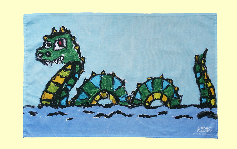 This week we are admiring this wonderful painting titled ‘Aries’, by Obi Oguguo. ‘Aries’ was painted in 2020, at Obi’s home, during Lockdown. It is part of our exhibition of Lockdown artworks, ‘As Time Stood Still, Part Two‘. It is quite a big painting and we imagine it taking over the room for a while when he was working on it! Obi stays at home with his family, who are very supportive of his studio time and painting. It’s great they’ve made space in the house to accommodate Obi’s easel during the last year, while the Project Ability studios have been closed!