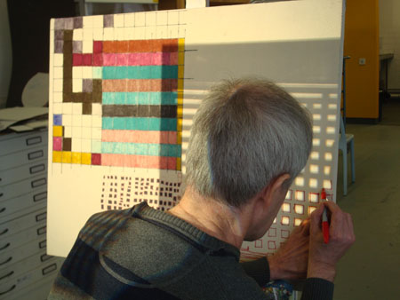 Joe has returned to his canvas meticulously covering the surface with pattern and colour.
