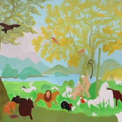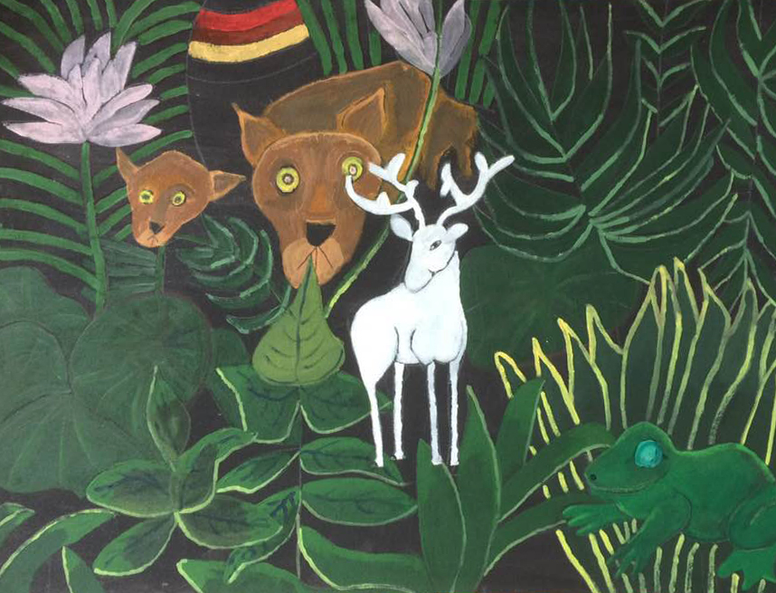 Careful composition and vibrant colour palettes are the hallmarks of Marina Devlin‘s work. Marina’s paintings draw on the symbolism and spiritualism of nature, featuring creatures big and small against vast skies, woodlands and mountains.