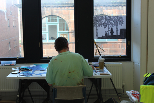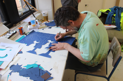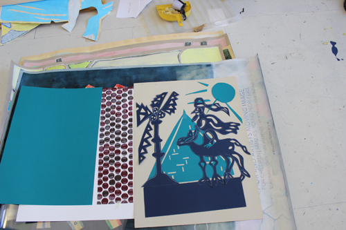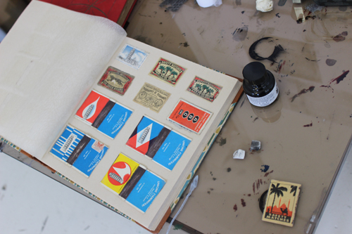 Hammond has a scrapbook showcasing the top of match books, each with its own design and imagery. The artists went on to make a stencil inspired by the match books, which will then be used to produce a print next week.
