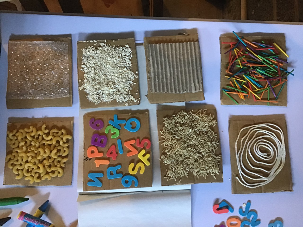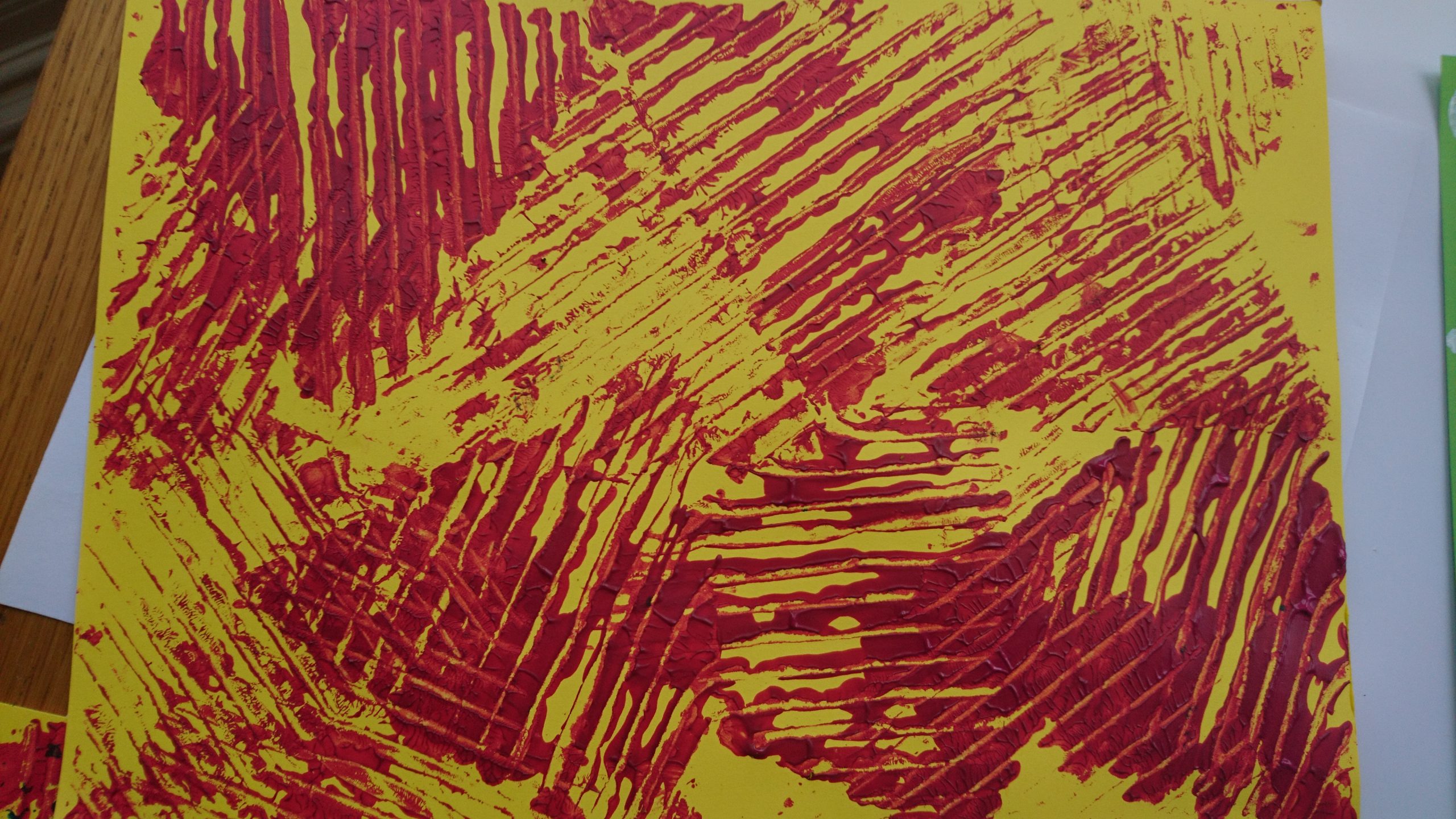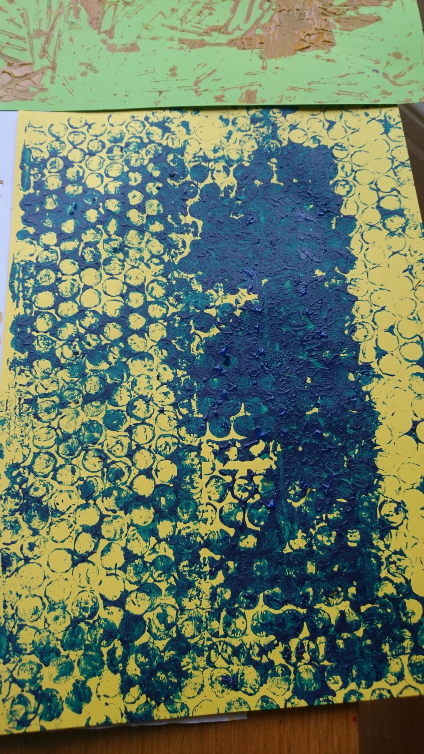 On week two, everyone created their own fun printing blocks, again using household objects such as rice, pasta, string, sticky tape, bubble wrap and cardboard.