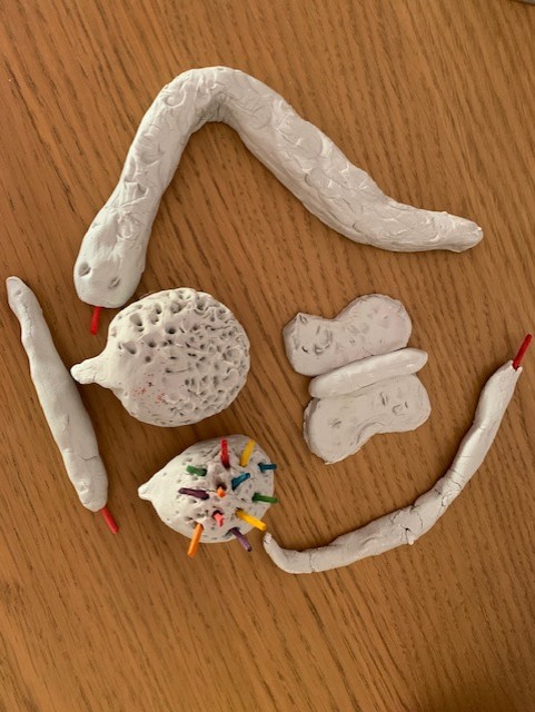 Week four seen our young artists explore texture and mark-making in a new way; working with air drying clay they created textured and patterned animal tiles!