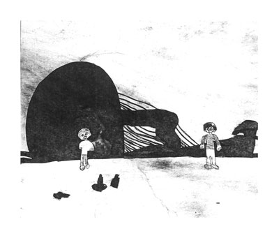 Next in our artwork of the week series, we are pleased to bring you this stormy scene by Aspire artist David Kerr. Completed without a title, this intriguing piece of work with an unidentifiable backdrop, unknown time and place, somewhat recalls the absurdity of the black and white Disney cartoons of the 1920s.