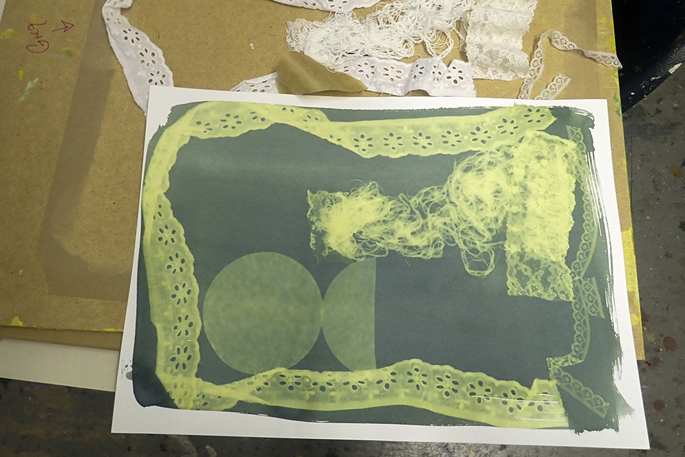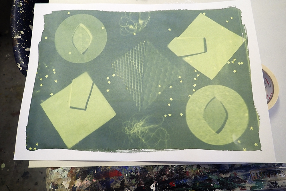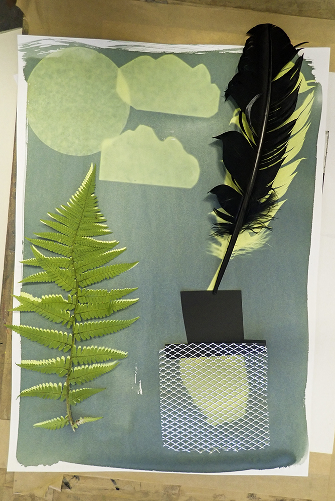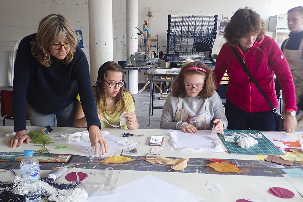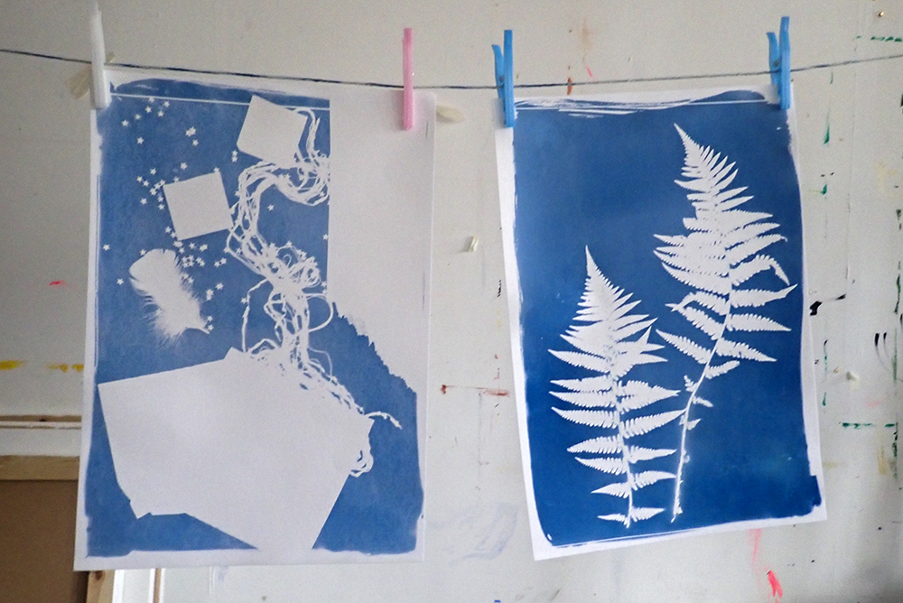 Last week our Down’s Syndrome Sunday Social group were experimenting with Cyanotype prints. The final results looked brilliant hanging along the art studio!