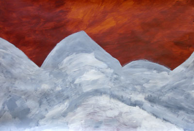 We think you will agree that Duncan's painting depicts wonderfully the vastness of the landscape, and captures the imagination with thoughts of the sparkling white, ice capped mountains stretching up into a mass of deep, dark skies.