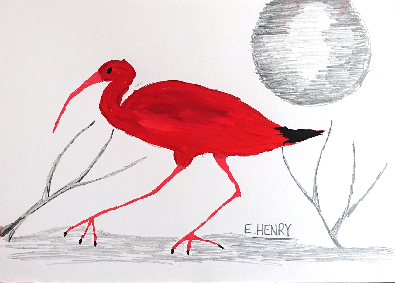 Edward Henry has a fascination with the natural world – places he’s never been, animals he’s never seen – Edward takes these creatures and places and makes them his own by recreating them in his honest, straightforward way. He is a curious artist who enjoys seeing new perspectives of the world. He has been as prolific during Lockdown as he normally is in the studio, we’ve been pleased to see. We asked Edward to post some of his artwork to us for exhibition and we’ve been so impressed with the pieces he’s sent us. Since working at home during Lockdown, we can see some new developments in his work, for example the mixing of mediums such as paint and pencil, and also a lot more coloured pens and pencils. We appreciate it is hard for artists to find the space at home to work with easels and palettes, canvases and big brushes – and it is so good to see everyone improvising and trying new things.