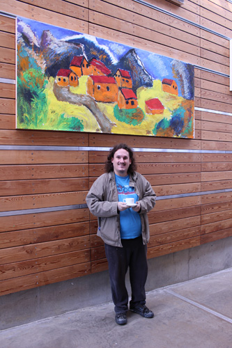 Aspire artist Jonathan McKinstry has had a very busy few weeks: not only does he have two large paintings exhibited in Platform, he also designed one of our Christmas cards for this year, and is working towards his own solo showcase in November.