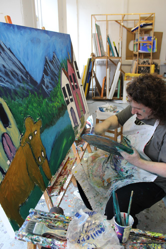 Jonathan is currently making large paintings of places he has been to or that inspire him, which include Edinburgh zoo, Ireland and Mos Eisley Cantina from Star Wars!