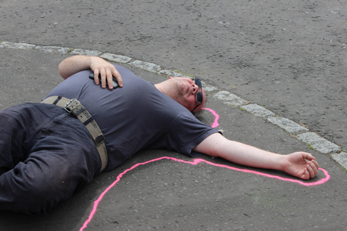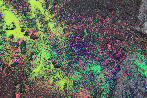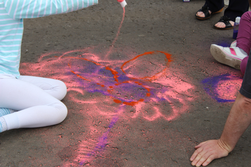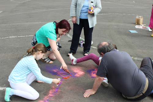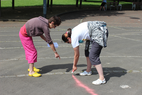 The weather was glorious, so the group decided to relocate in Glasgow Green, where they designed beautiful shapes in coloured sand.