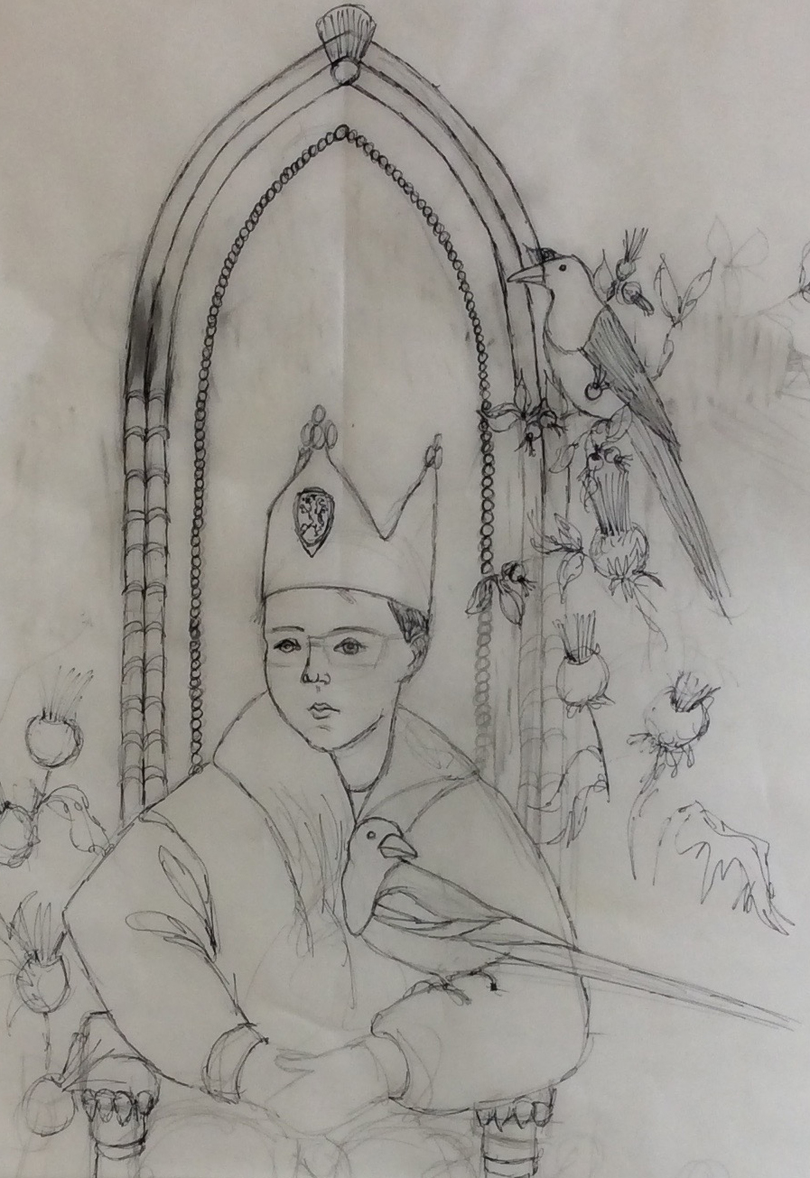 The work that I started at Project Ability will be part of my ongoing series of drawings on linen that explore my family history through retelling and embellishing the bits and pieces of what little I know.  I was happy to get to the library at Airdrie to find out more about my Lithuanian ancestors who immigrated to Glasgow around 1900. Up in the Isle of Skye my cousin and I explored cemeteries looking for graves of ancestors.