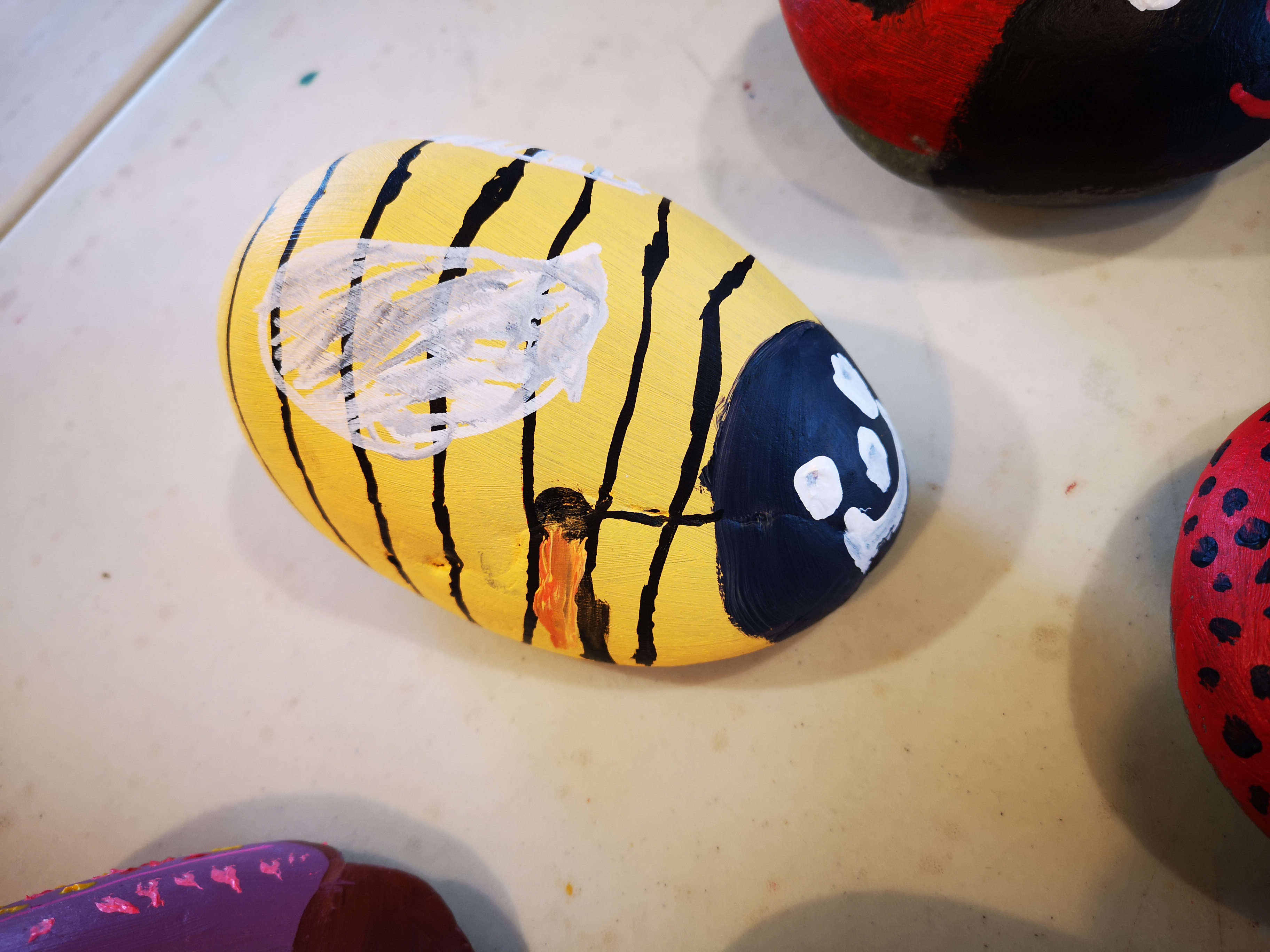 In week two we were inspired by nature and decorated rocks using a variety of painting techniques, creating colourful insects, animals and characters.