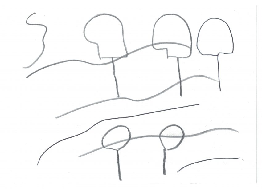 Today we are looking at a small selection of postcards by three different artists in our Lockdown Postcards feature. These four sit together in a quietly soft and appealing way, and are all perfect examples of minimal line work with a strong design element. Two of these postcards have been sent in by Peter Carlin, one by Mary Carlin and one by Ronnie Stokesley. We haven’t seen any artworks in the gallery by Peter or Mary before, but Ronnie has been a regular gallery exhibitor for a few years. You can see some more of his work in our latest exhibition, As Time Stood Still, Part Two.