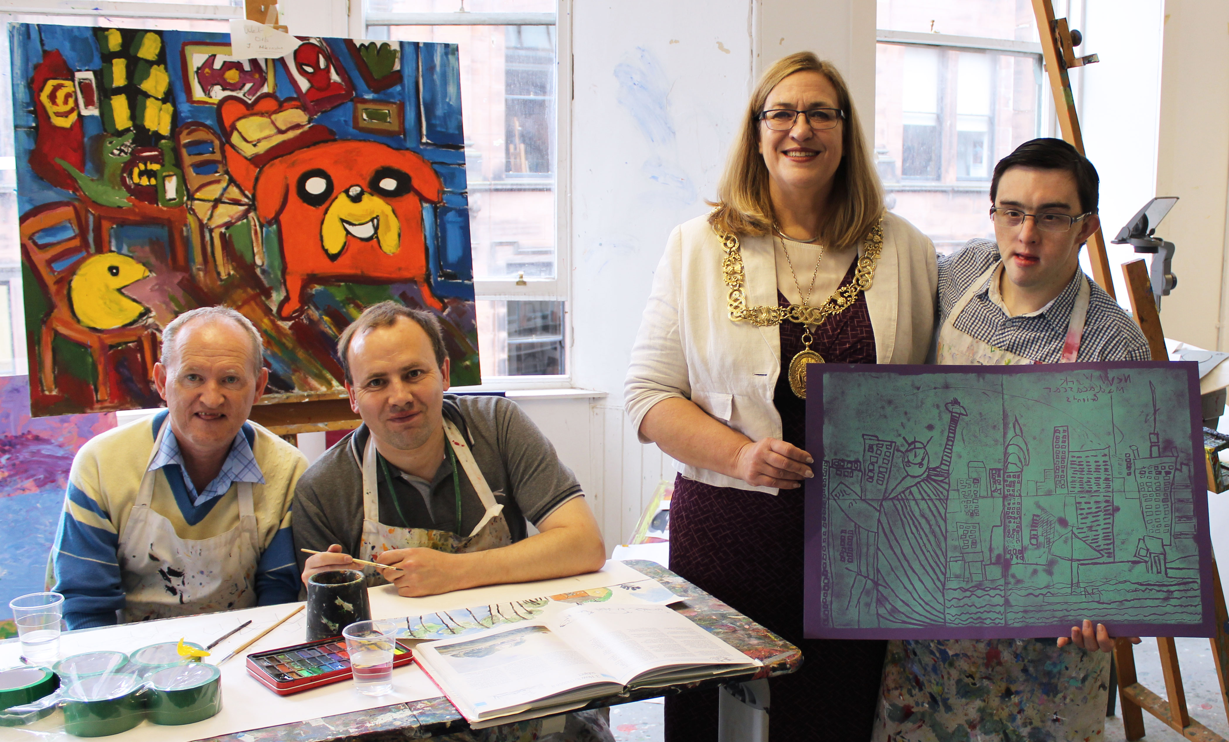 Today we had a lovely visit from Eva Bolander, the Lord Provost of Glasgow. Our artists enjoyed showing Eva around our art studios and talked through some of their artwork and current projects.