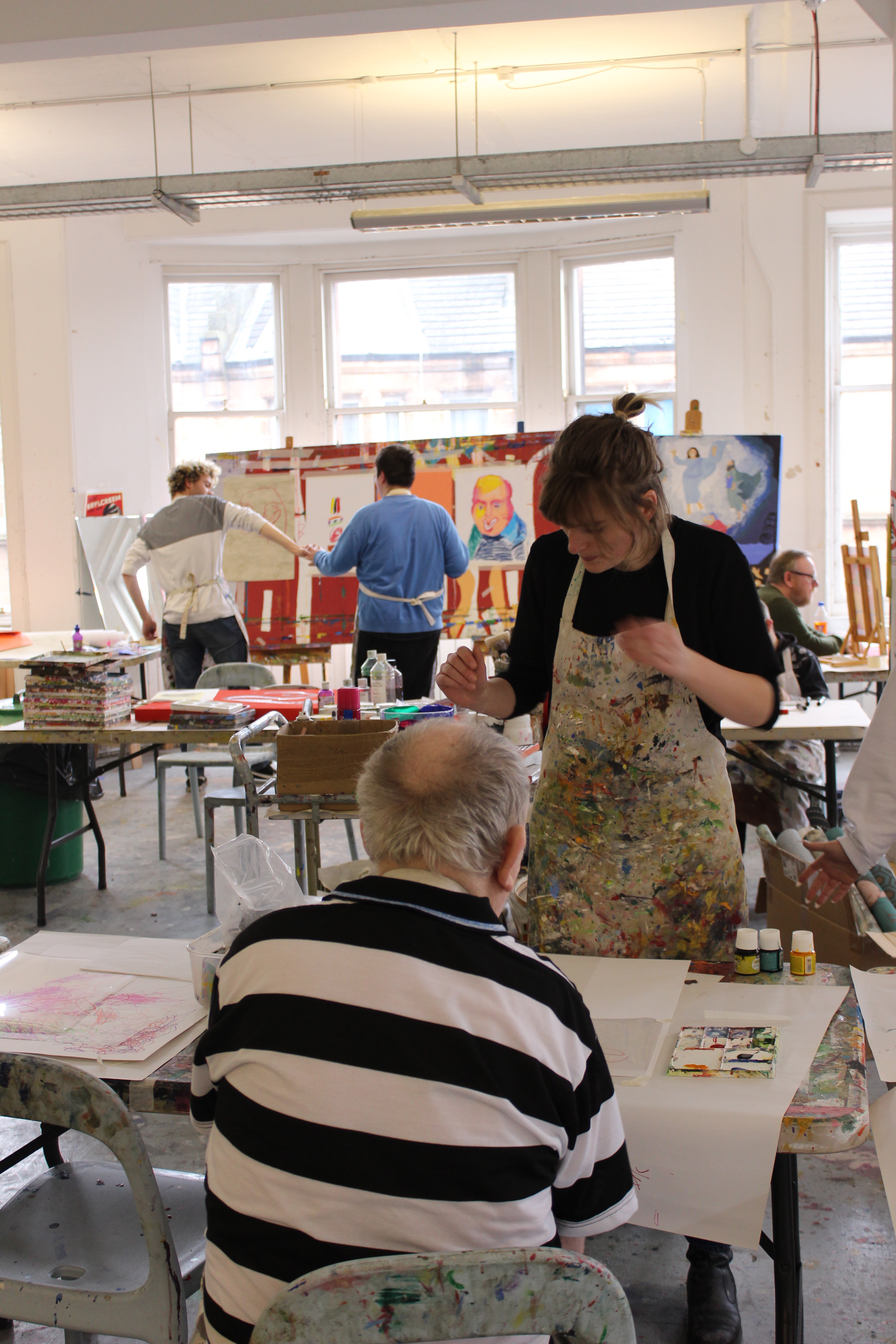 I wanted to volunteer as I really enjoy being around people making, observing different people’s creative process. The Aspire workshops I volunteered with on Wednesday mornings and afternoons and Thursday mornings, are attended by such an amazing range of artists who all have such different approaches to art-making and it is really exciting just to be around that. I also wanted to understand better how I can work as a curator in an inclusive way; supporting artists and audiences often excluded from consideration. This of course going to be a continuing learning process, but I definitely feel that spending time at Project Ability has been a helpful step. It has been really great to spend time in an organisation and with artists that offer an alternative perspective on art and curatorial practice to ones I already access, through the art school or university. Being in a space where studios, offices, gallery are all housed under the one roof, not separated from each other, is so exciting; all parts of cultural and creative production being visible.