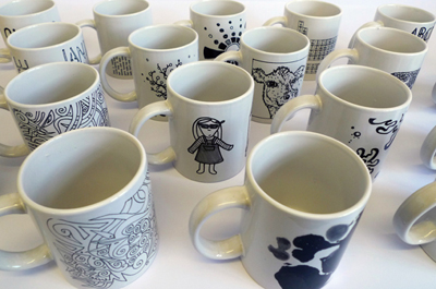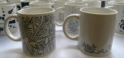 The Connect participants have been taking part in some mug design workshops, and the results are brilliant! Abstract motifs, cows, rorschach images, text, they have shown great inspiration!