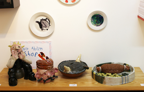 Oor Wullie fans will be delighted to know that Cameron Morgan‘s ceramics from the Hybrid Making show are now for sale in our shop. There also new print works, drawings and paintings by Project Ability artists, and a family of ceramic sheep!