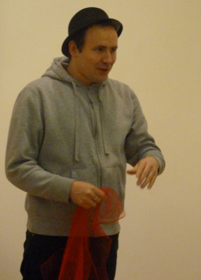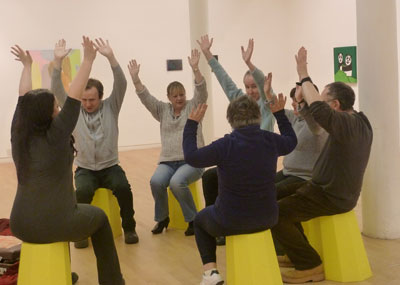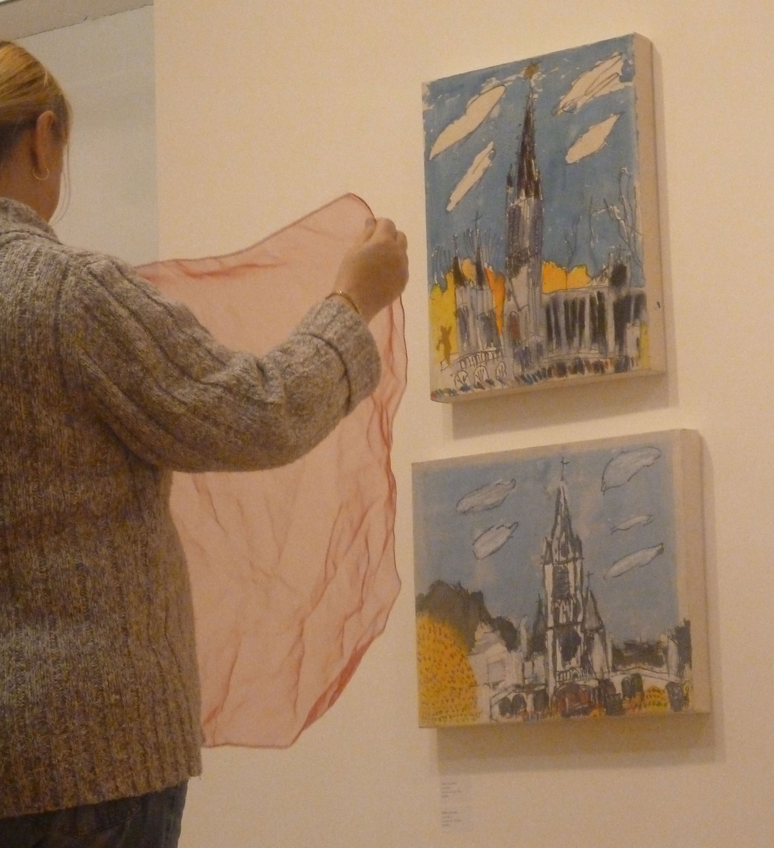 Finally taking a flotilla of coloured scarves on a dance round the gallery bringing together the sights and sounds of the exhibition.