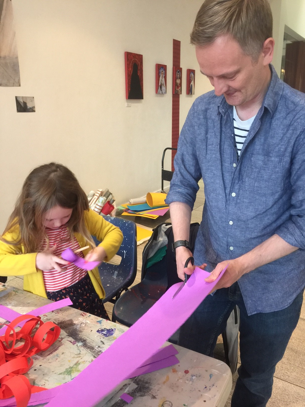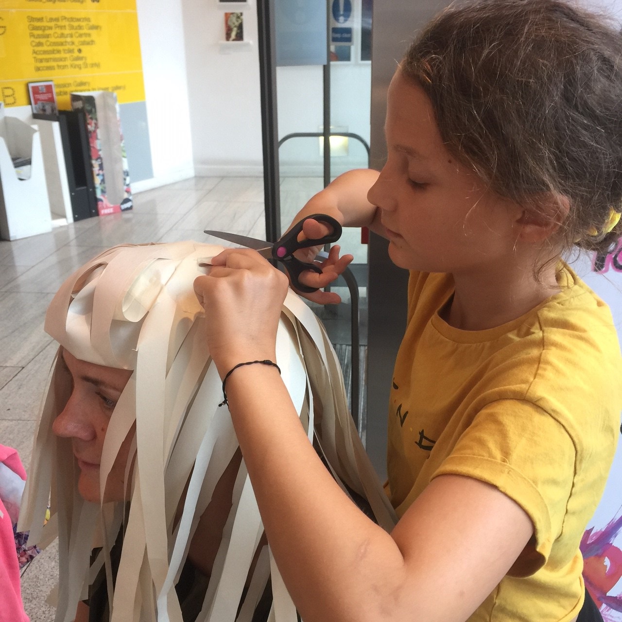Despite the rainy Glasgow weather, our paper making wig workshop at The Merchant City Festival was queued out! The groups experimented with different paper curling and folding techniques and the results were fantastic. I’m sure the adults enjoyed it just as much as the kids!