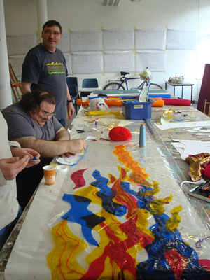 Project Ability's Aspire artists have been busy in the workshop preparing for Sundays Flame Celebration event at Tramway.  This event is to mark the start of the Para Olympic games on Wednesday 29th August 2012