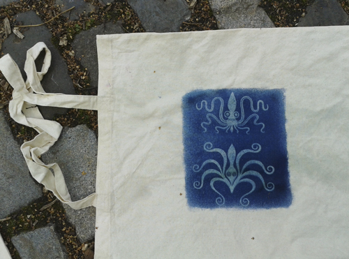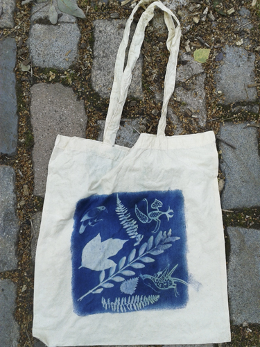 Project Ability was invited to work with a group that meets regularly at the Hidden Gardens. The group is a collective of individuals that access the gardens and participate in workshops exploring horticulture, gardening, cookery and art. The medium of choice for the workshops that took place over two afternoons in August was printmaking. In particular cyanotype printing, which is a photo based process that involves coating a surface (in this case paper and canvas bags) with chemicals that are then left to dry in the dark and become sensitive to UV light… as in sunshine!