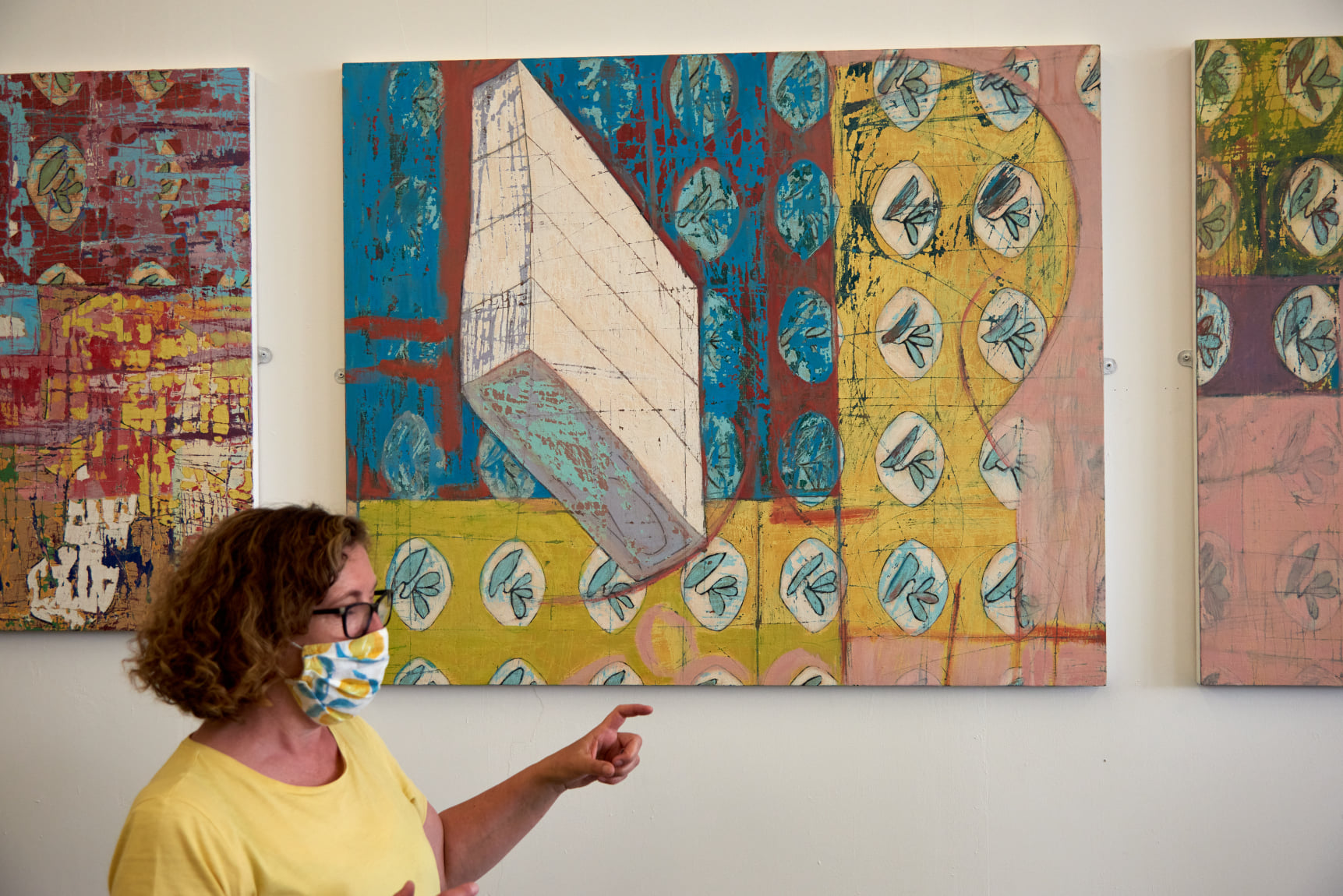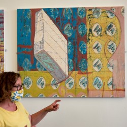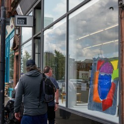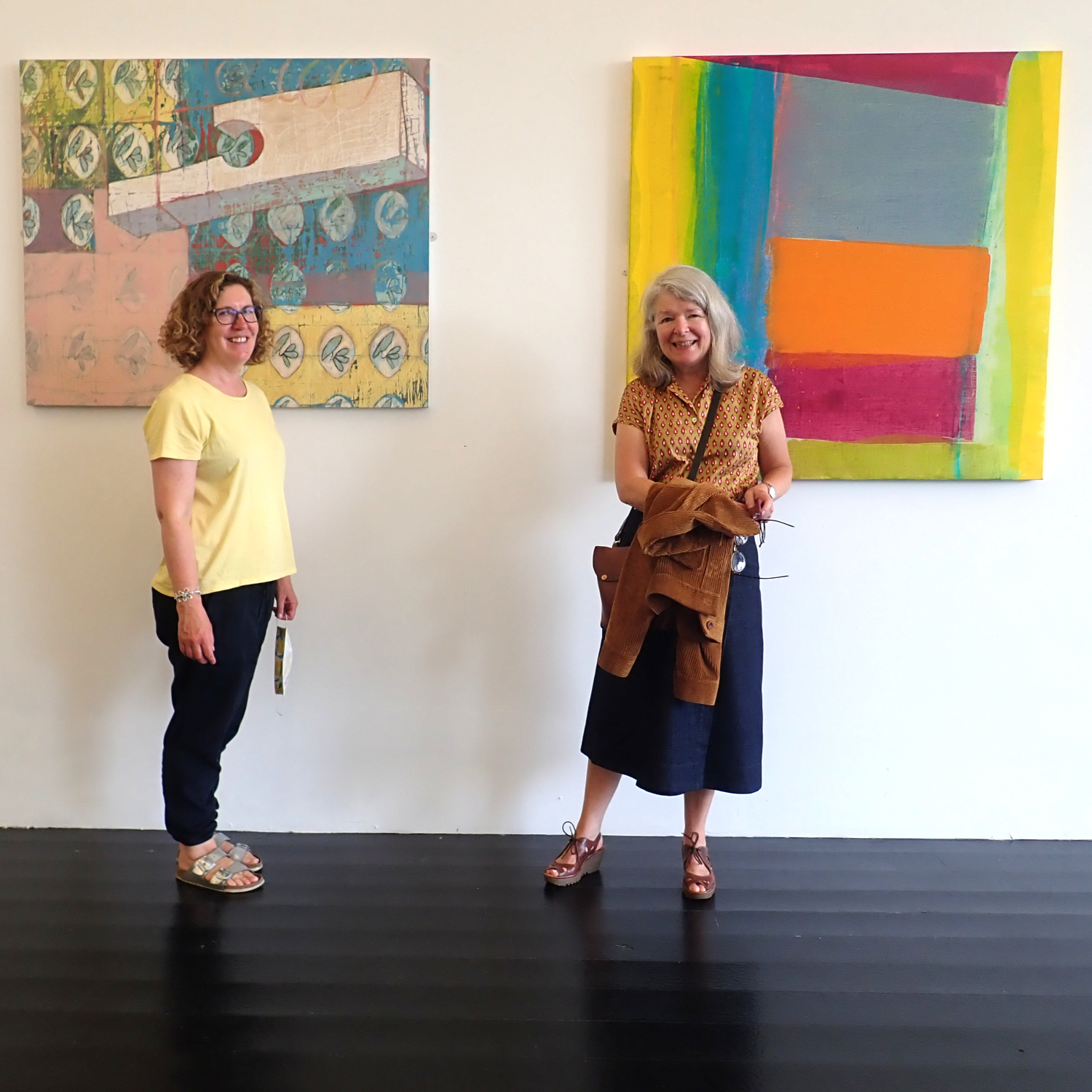 Our ReConnect walking group met at our Trongate 103 home, and moseyed on round the corner to South Block, where we visited an exhibition of paintings by Sarah Kudirka and Rowena Comrie. Sarah was an artist in residence in our studios in 2018, and she and Rowena kindly agreed to meet the group in the gallery to talk about their paintings and answer any questions. It’s a lovely exhibition and well worth a visit!