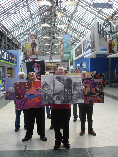 James Smith, John Cocozza, Steven Reilly, Cameron Morgan, William Smith, Edward Henry and Patrick Butterworth with their work which will be exhibited in the SECC concourse during May-June 2012.