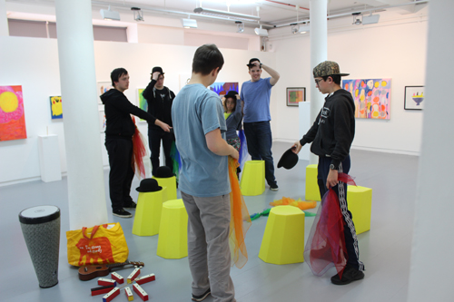 The first of our two week-long performance workshops will be drawing to a close on Friday. The young artists involved spent the week experimenting with music, textures and movement, responding to our current exhibition Young Talent through the medium of performance art.