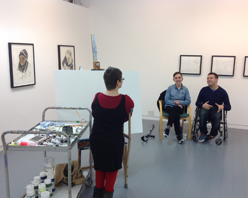 So here I was, back in the Gallery surrounded by my portraits, about to set about making a new portrait commissioned by Project Ability. Only this time we decided to set it up in the gallery with a live audience and to live stream the event on Twitter Periscope. Both a first for me and for Project Ability!
