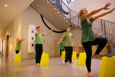 The dancers started their performance in the foyer, before moving to the attrium, the Glasgow Print Studios gallery, and finished their tour in the Project Ability gallery. Their performance responded to how the building, the different organisations and exhibitions inspired them.