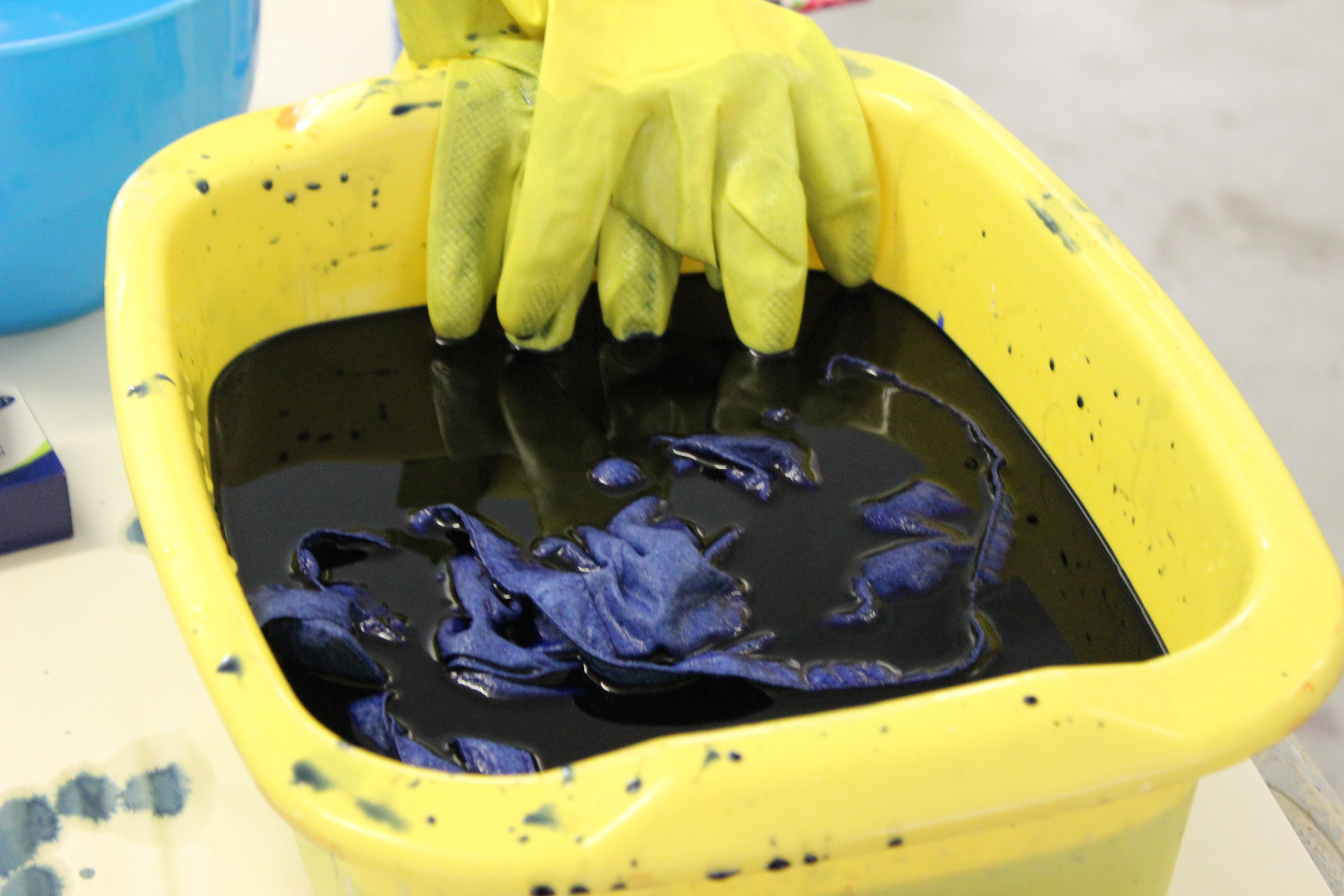 I ended last week with a Saturday morning shift, taking pictures and videos of the Friends and Family Tie Dye workshop. At first I wasn’t sure how much interesting footage and pictures I would get: it seemed like quite an intricate process and the kids were really absorbed in it. I wasn’t sure how many were going to be there and it was quieter than expected. However, after seeing the bucket of dye and how easily it splashed on even the most careful participant, I was quite glad!