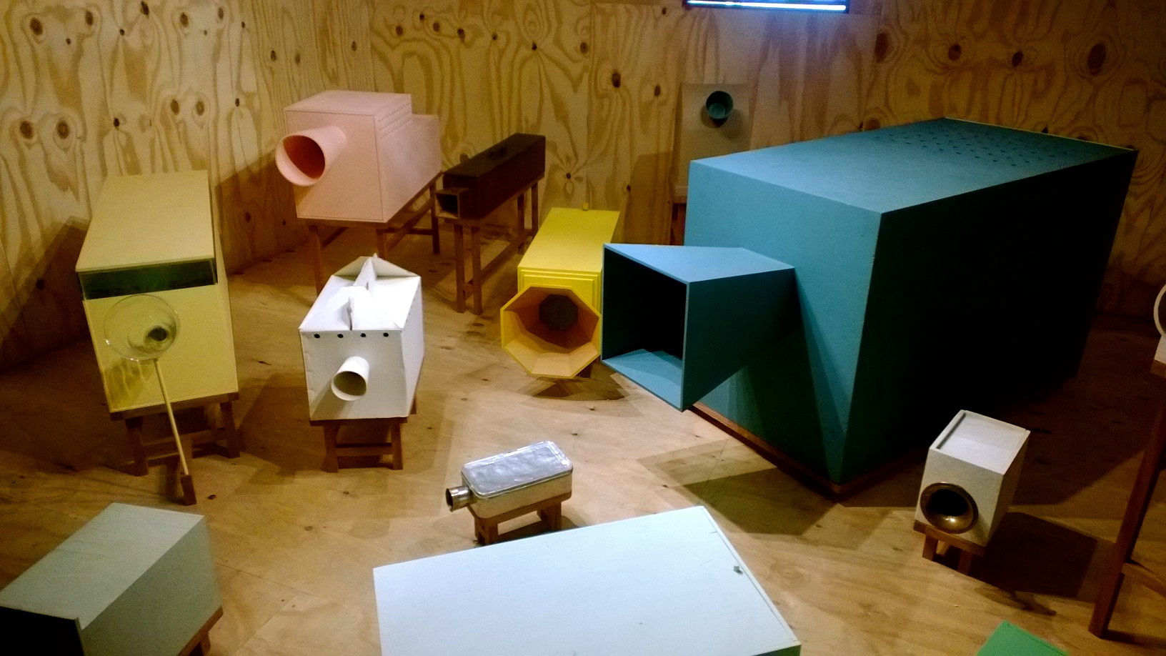The group were shown around the bigger woodwork shops, before going upstairs to see the ceramics and plaster rooms. The tour was ended by a visit around their current exhibition, Blocked Arch, Deferred Ceremony, Dawn Chorus: Tra-diddle da. Like a fly in slow suspense, by Canadian artist Gareth Moore. The project centred around the regeneration of the area and the found objects retrieved from the nearby canal. The area is currently being redeveloped as a creative quarter, and it was interesting to see how old, discarded objects had been similarly reinvigorated by their inclusion in the show. Even the walls of the gallery were a part of it: they had been decorated using pet food, which had been ground into a paste and mixed with paint.