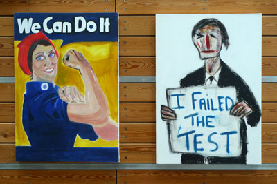 The exhibition incorporates logos, signage, symbols and advertisements rendered in paint constructing patterns of thought moving from the real to the symbol and amassing to an abstract configuration of colour and shape. This landscape of signs offers different viewpoints of the imagery that is encountered in everyday life, depicted in large scale and potentially limitless.