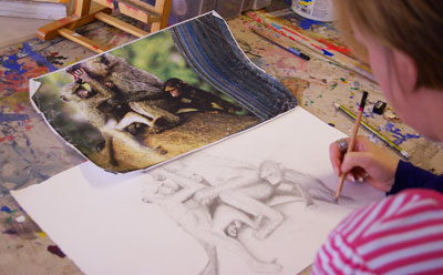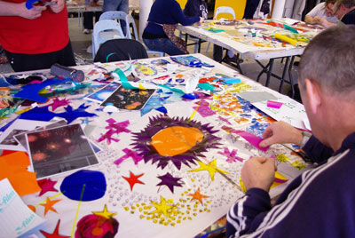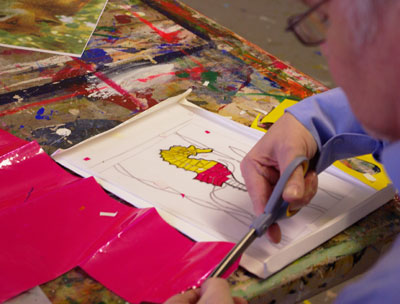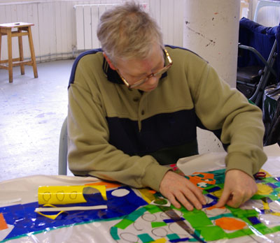 and a group from the Stewart Centre, Castlemilk are here painting on canvas and silk, printmaking and drawing.