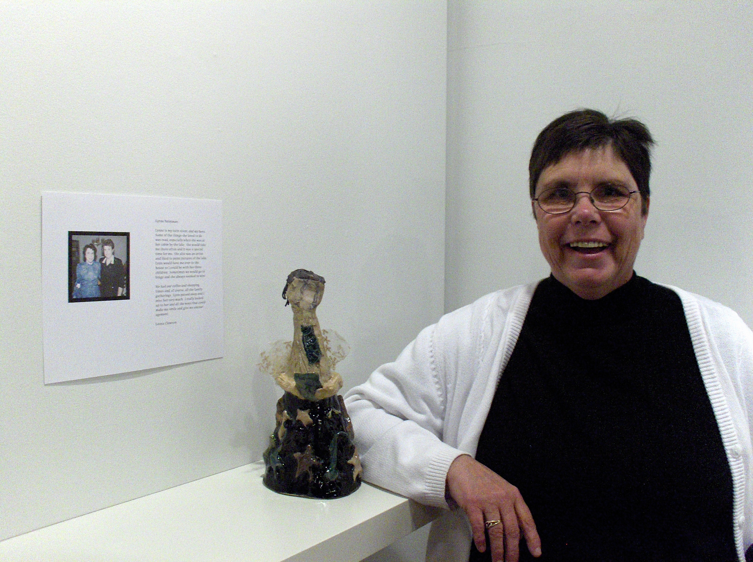 Images from top: ‘Have a Super Holiday’ by Randy Stennes, Leona Clawson with her piece ‘Lynn’, Leona Clawson exhibiting her work, scultpure by Leona Clawson, Randy Stennes exhibiting, and Randy Stennes working in the studio.