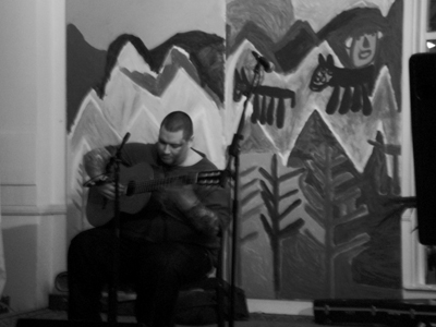 Despite the rotten weather a good crowd turned up at Mono last night to the opening of Tommy Mason’s solo exhibition and to hear beautiful music by R M Hubbert, Alasdair Roberts and International Airport djs.