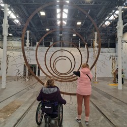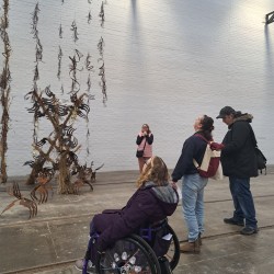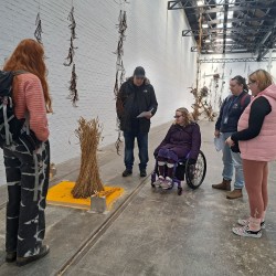 On Wednesday 26th October a group of Project Ability artists visited Tramway in the south side of Glasgow to see two very different exhibitions. Upon arrival we went into the smaller gallery to see the work of Norman Gilbert. Gilbert was a Glasgow painter who lived close to Tramway in his family home and studio. Painting almost exclusively his family and close friends, his works are vibrant, to the point that in his black ink on board pieces one can still feel the colours seep through. He painted for over 60 years and that vast time period is reflected in the art shown. Accompanying his painting are clothing, sketches and items from his home, it makes for an eclectic mix and gives the visitor a sense of what his home studio felt like.