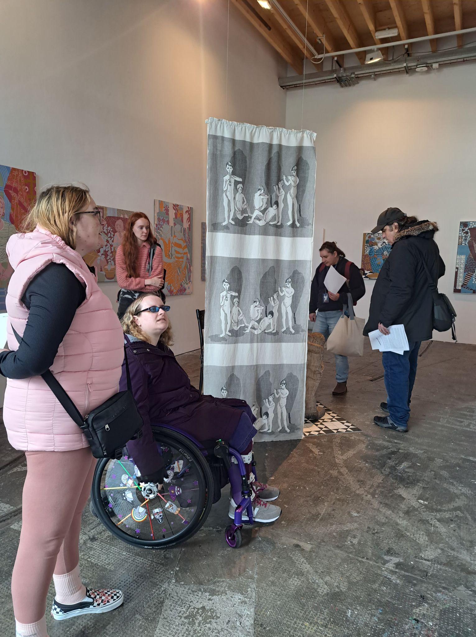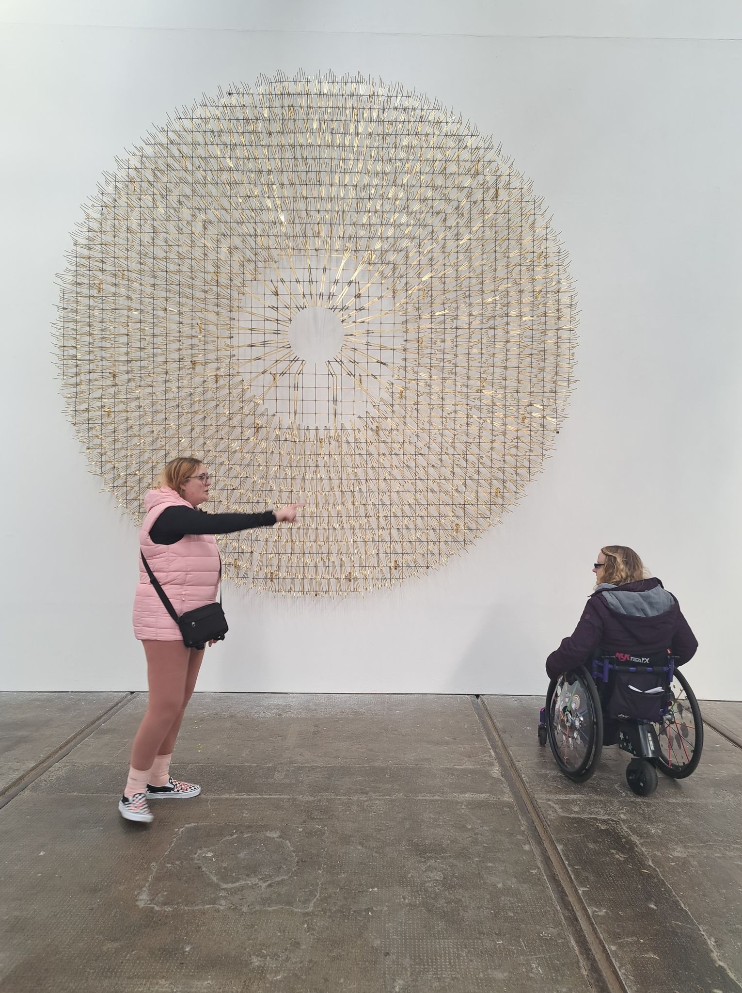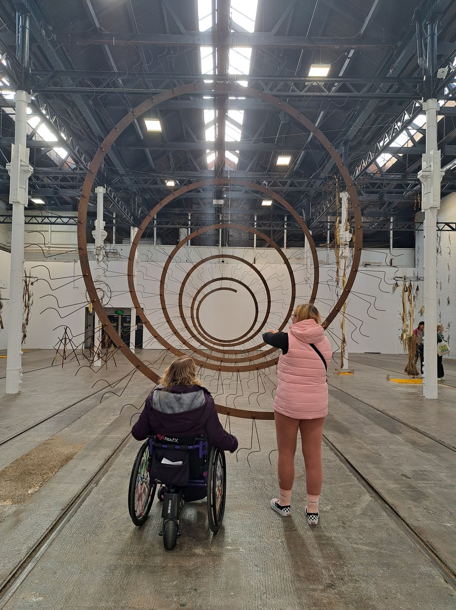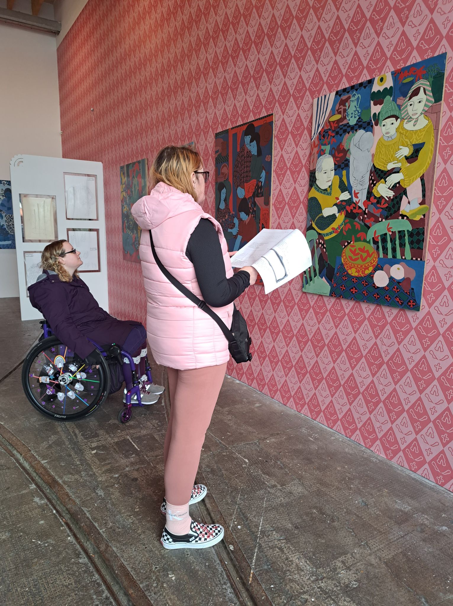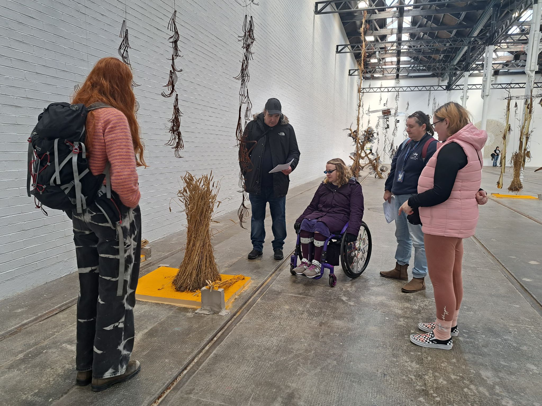 On Wednesday 26th October a group of Project Ability artists visited Tramway in the south side of Glasgow to see two very different exhibitions. Upon arrival we went into the smaller gallery to see the work of Norman Gilbert. Gilbert was a Glasgow painter who lived close to Tramway in his family home and studio. Painting almost exclusively his family and close friends, his works are vibrant, to the point that in his black ink on board pieces one can still feel the colours seep through. He painted for over 60 years and that vast time period is reflected in the art shown. Accompanying his painting are clothing, sketches and items from his home, it makes for an eclectic mix and gives the visitor a sense of what his home studio felt like.
