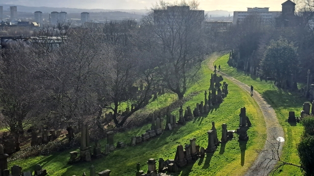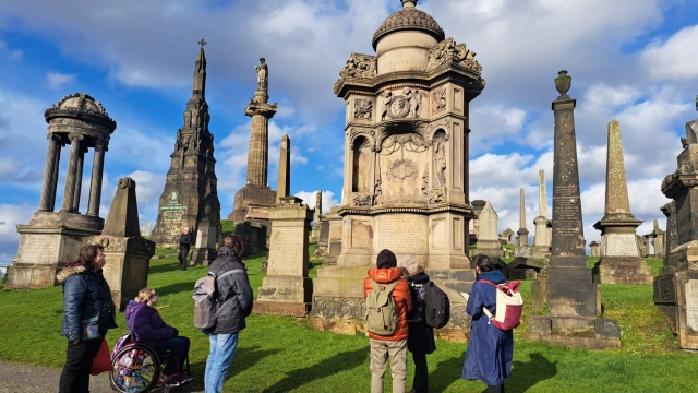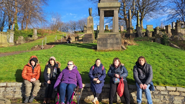 Our walking group were fortunate to have a dry and sunny day for a visit to Glasgow Necropolis this week, and after several outings that took us only short distances from the studios, this one was more of a stretch.