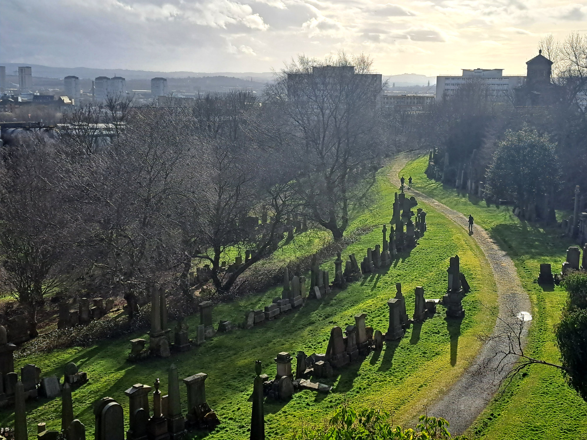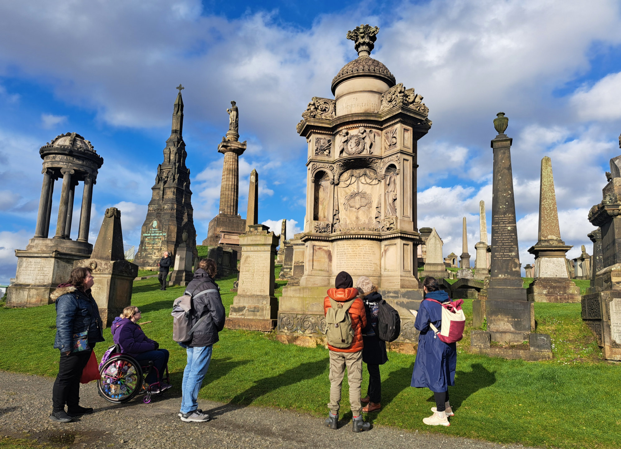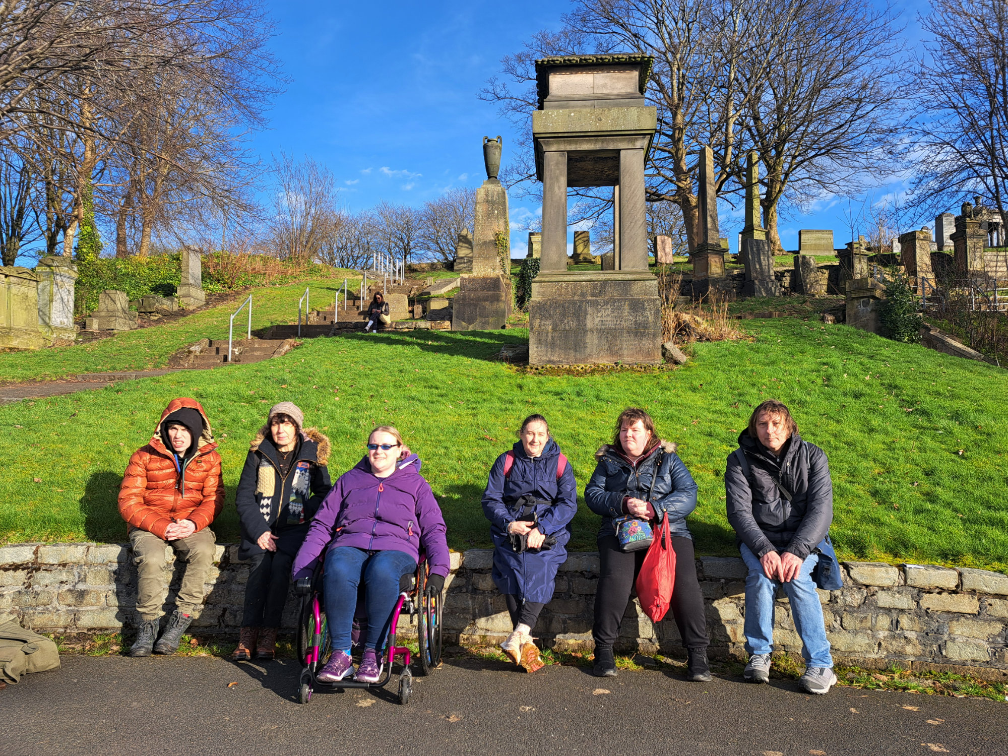 Our walking group were fortunate to have a dry and sunny day for a visit to Glasgow Necropolis this week, and after several outings that took us only short distances from the studios, this one was more of a stretch.