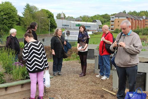 We started with a tour of the workshop facilities, popping into the metal, wood, resin, plaster and clay rooms. We also had a look outside at an area next to the car park which has been made into a community garden by local residents to grow fruit, vegetables and herbs.