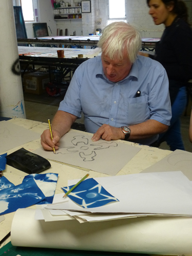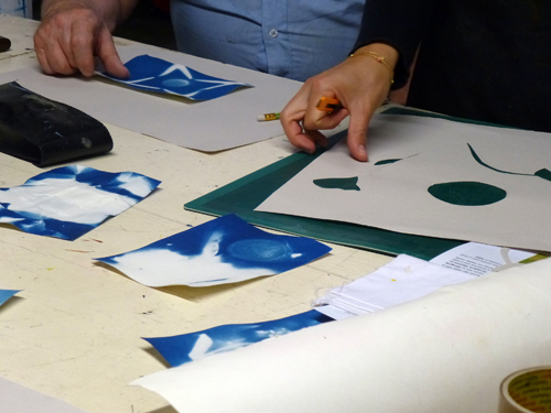 Marian and Lydia were the artists who met us and welcomed us to their screen-printing studio. They showed us some examples of the work they do and then facilitated a workshop where we made some screen-prints onto fabric tote bags. The designs for our patterns were based on the cyanotypes we had made at the Glasgow Sculpture Studios two weeks previously.