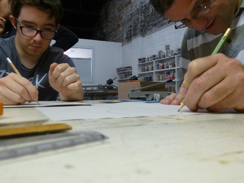 The walking group outing last week was a bit different from usual and didn’t really involve a great deal of walking. The group had been invited to The Glue Factory to meet artists working at Bespoke Atelier. They have been invited to submit a design for a sculptural artwork to be positioned next to the nearby canal and they wanted to get some input from the group.